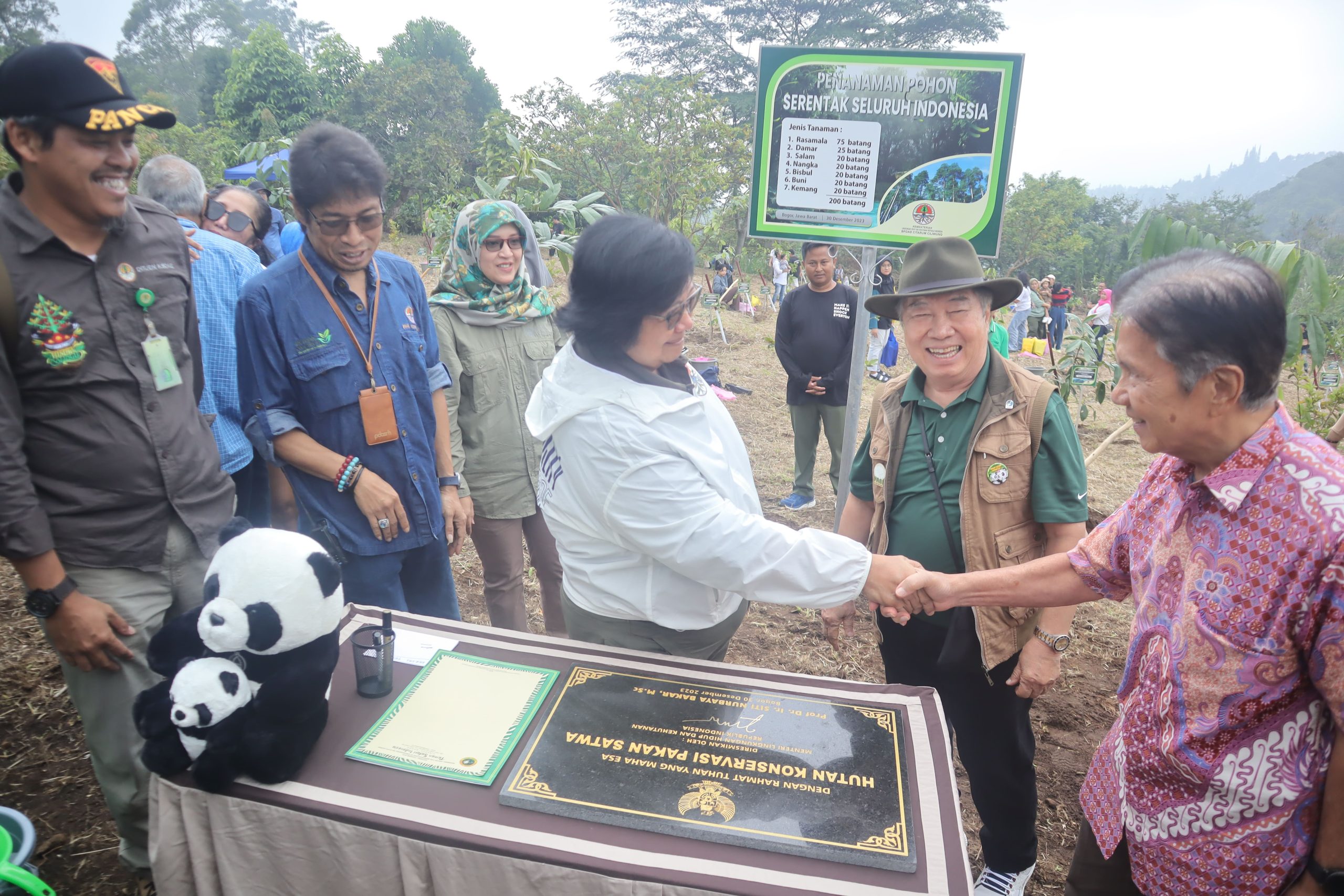 BOGOR- Menteri Lingkungan Hidup dan kehutanan (KLHK) RI, Siti Nurbaya Bakar, melakukan penanaman pohon di Taman Safari Bogor, Sabtu (30/12/2023). Siti Nurbaya Bakar mengatakan, program penanaman pohon ini dilakukan serentak di seluruh Indonesia dalam menjaga lingkungan selama musim penghujan.