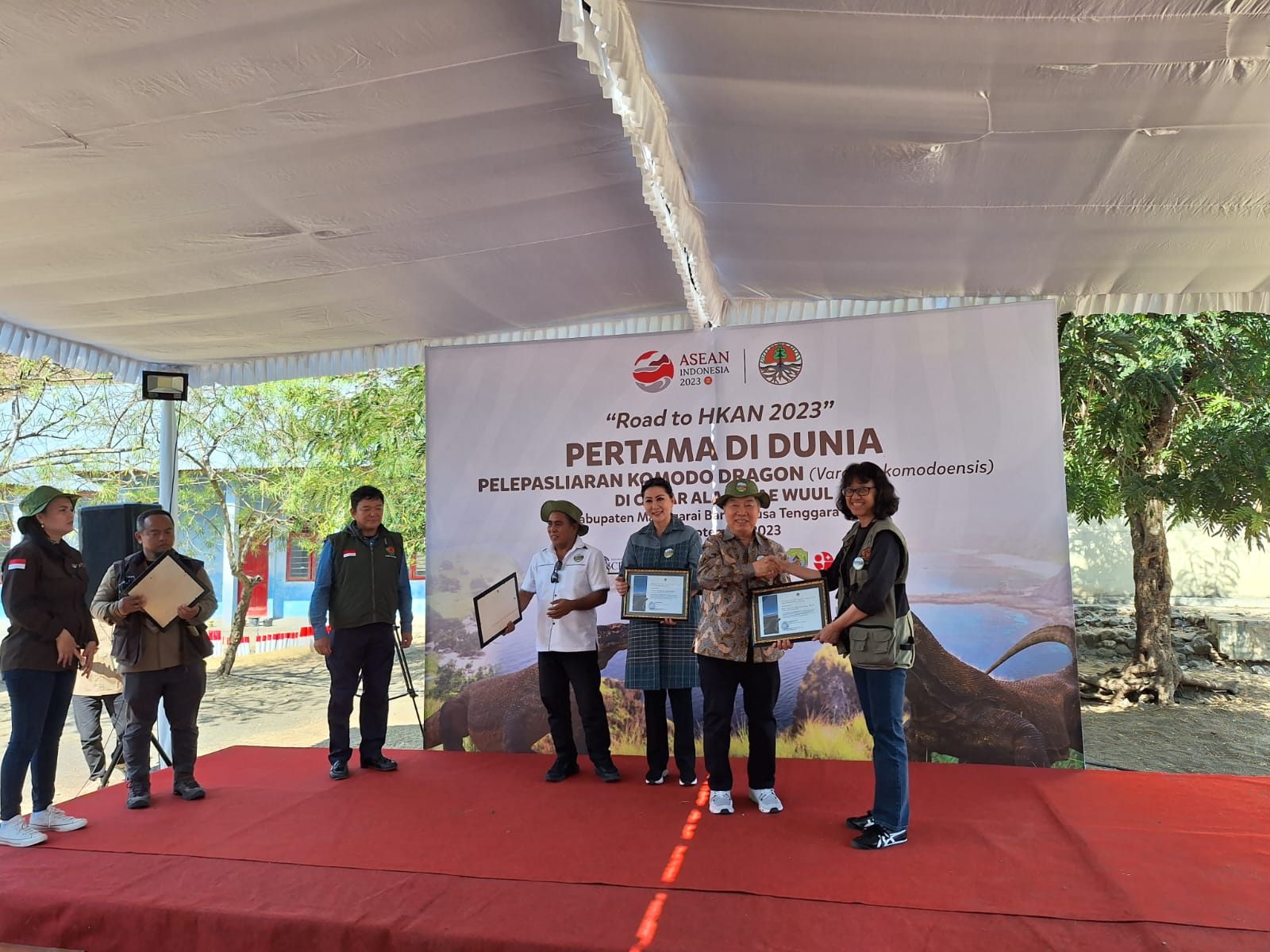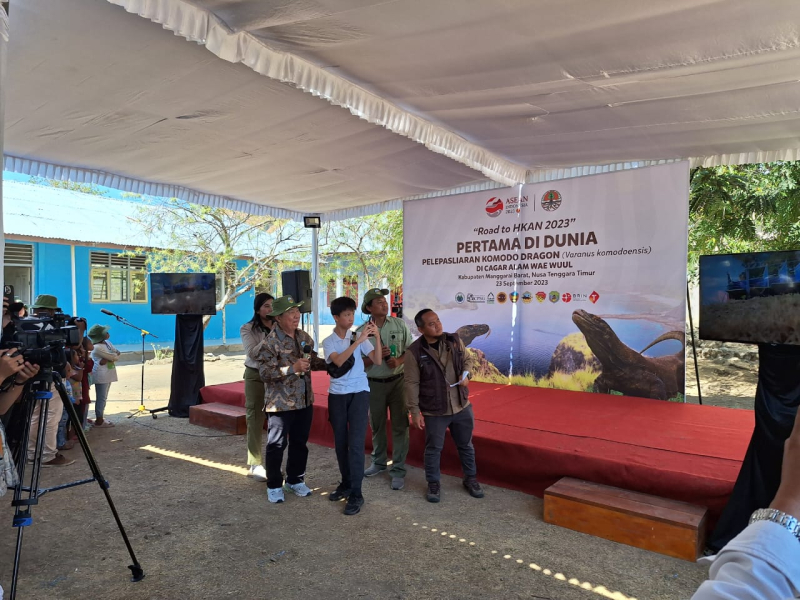 Pelepasliaran 6 ekor komodo sebagai implementasi program pentahelix konservasi satwa kebanggaan Indonesia ini dilakukan di pelataran Cagar Alam Wae Wuul, Manggarai Barat, Nusa Tenggara Timur (NTT), sebagai gelaran puncak Hari Konservasi Alam Nasional (HKAN) 2023.